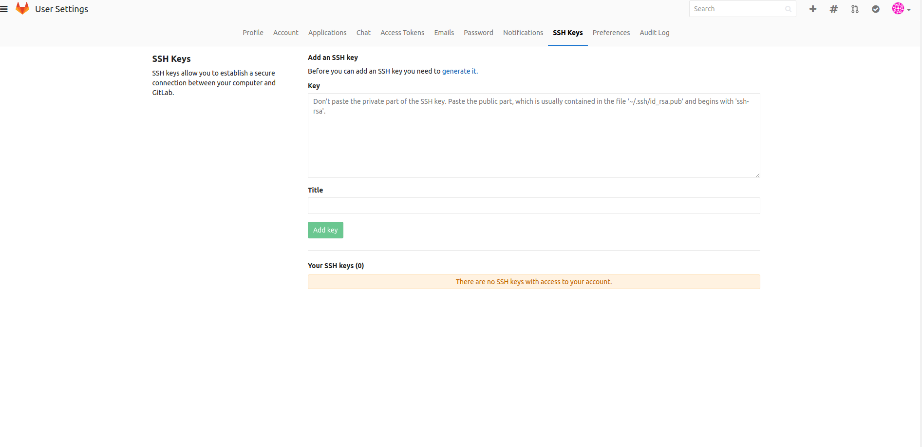 上传key至git服务器,如github,gitlab